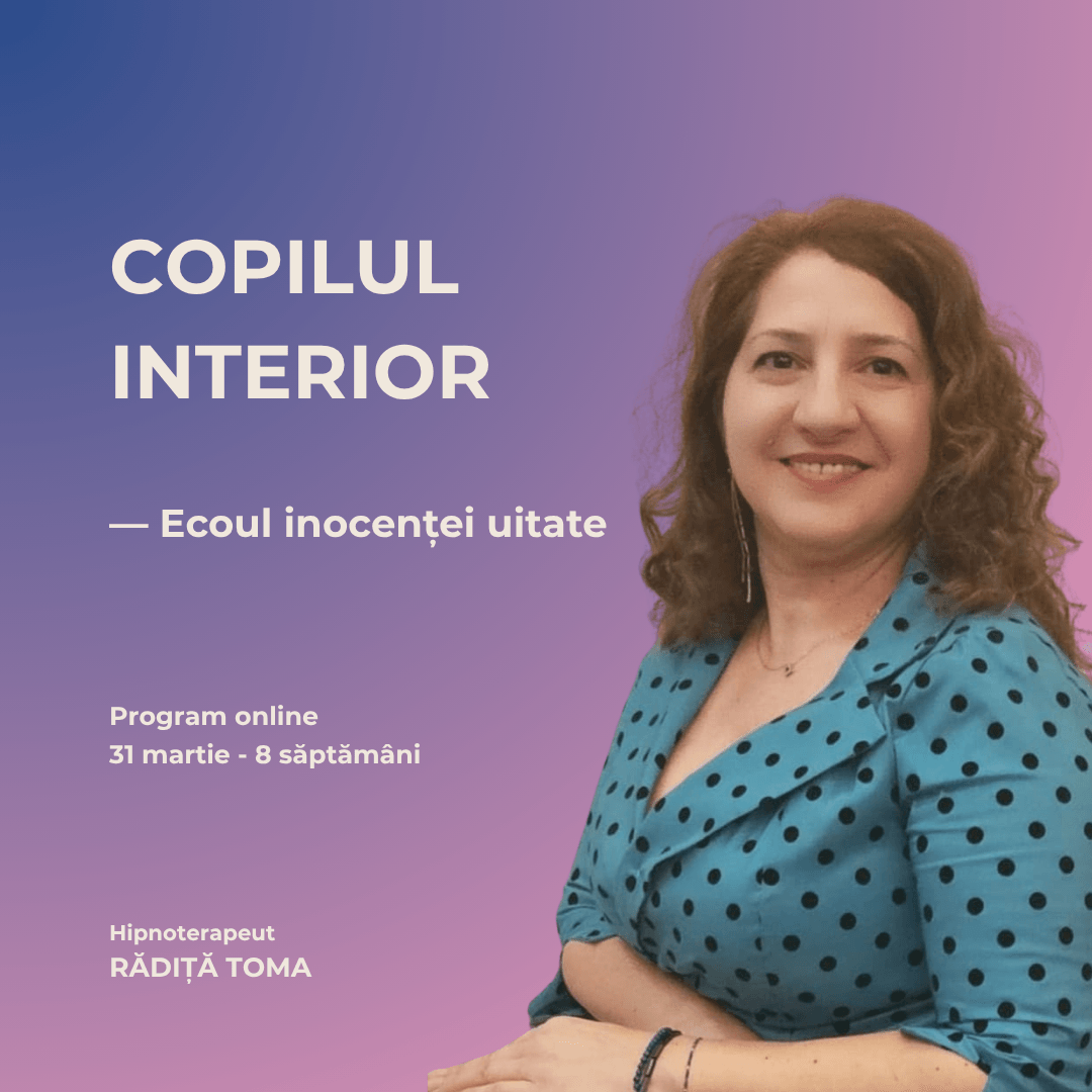 „Copilul interior – Ecoul Inocenței pierdute” este un program educativ de explorare și conștientizare. Nu este o intervenție terapeutică, ci un cadru structurat care te ajută să înțelegi cum s-au format anumite tipare emoționale și ce rol au avut experiențele timpurii în acest proces.